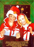 Gamla godingar som jag gjort för länge sedan! Målningen av skidkillen är Andre Myrer från Nordanstig. På brödpaketet är mormor och släkt avbildad från Jättendal. |